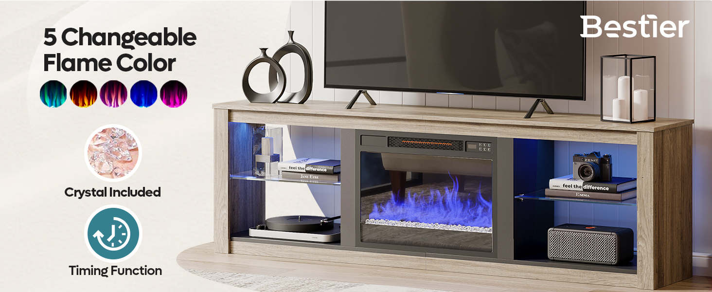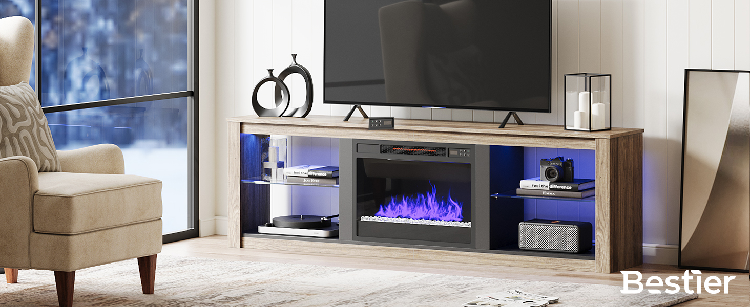 - Modern Design: Made of CARB certified P2 particle board, Bestier fireplace tv stand has great stability and durability.