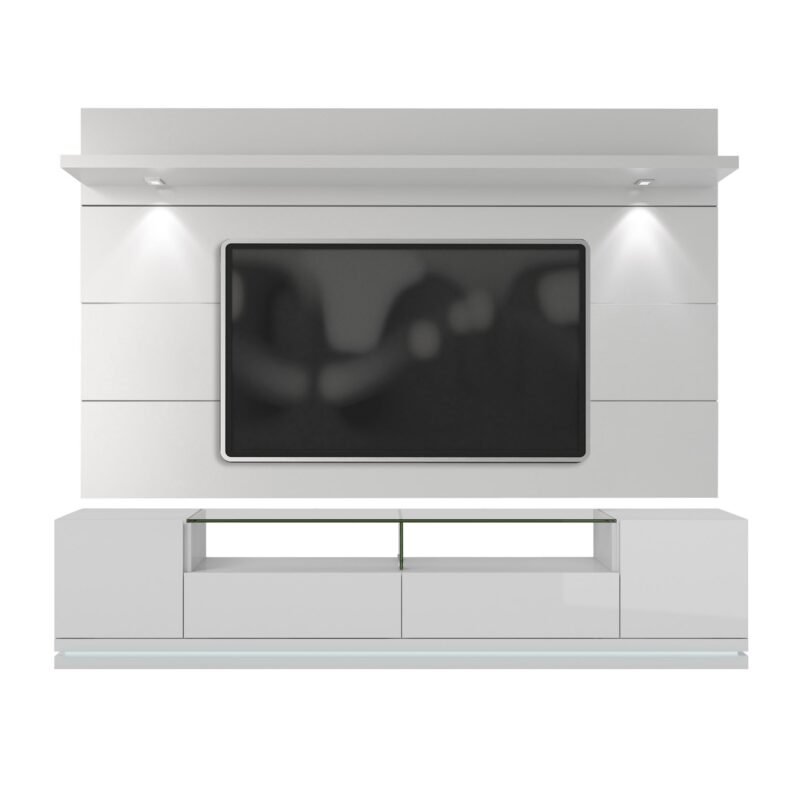Give your space a fresh and luxurious look with the Manhattan Comfort Vanderbilt TV Stand and Cabrini 2. 2 Floating Wall TV Panel Set. The TV stand and panel measures 85. 43″ inches L x 17. 63″ inches W x 71. 84″ inches H and weighs 264. 71 lbs. The panel is made from durable MDF and glass. This TV stand sports a luxurious modern look with a polished finish and tempered glass shelves. Enjoy plenty of storage space with the open shelves and drawers. The panel comes with all the necessary hardware and brackets. Designed to be installed on concrete and brick walls. Perfect for the living room or master bedroom. Manhattan Comfort, a developing furniture company based in New York City, began with the goal of bringing modern and stylish furniture to living rooms nationwide. Gradually becoming a household name, Manhattan Comfort creates quality furniture through a production process that ensures each piece created is flawless.