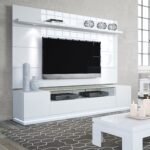 - Beautiful Theater Set with Tempered Glass Top and LED Mood Lights Gives Your TV an Elegant Appeal. The Paint Finish Features Microban Protection.