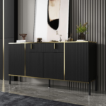 - [Quality Material] – The credenza is mainly made of thick MDF board, which ensures stability and durability. The wave-looking surface is really polish, wear-resistant, easy to clean and dry out. The bottom is equipped with black metal legs, which ensure stability, and at the same time increase the sensory impact. Overall Dimension: 63”(W) x 15.7”(D) x 31.5”(H).