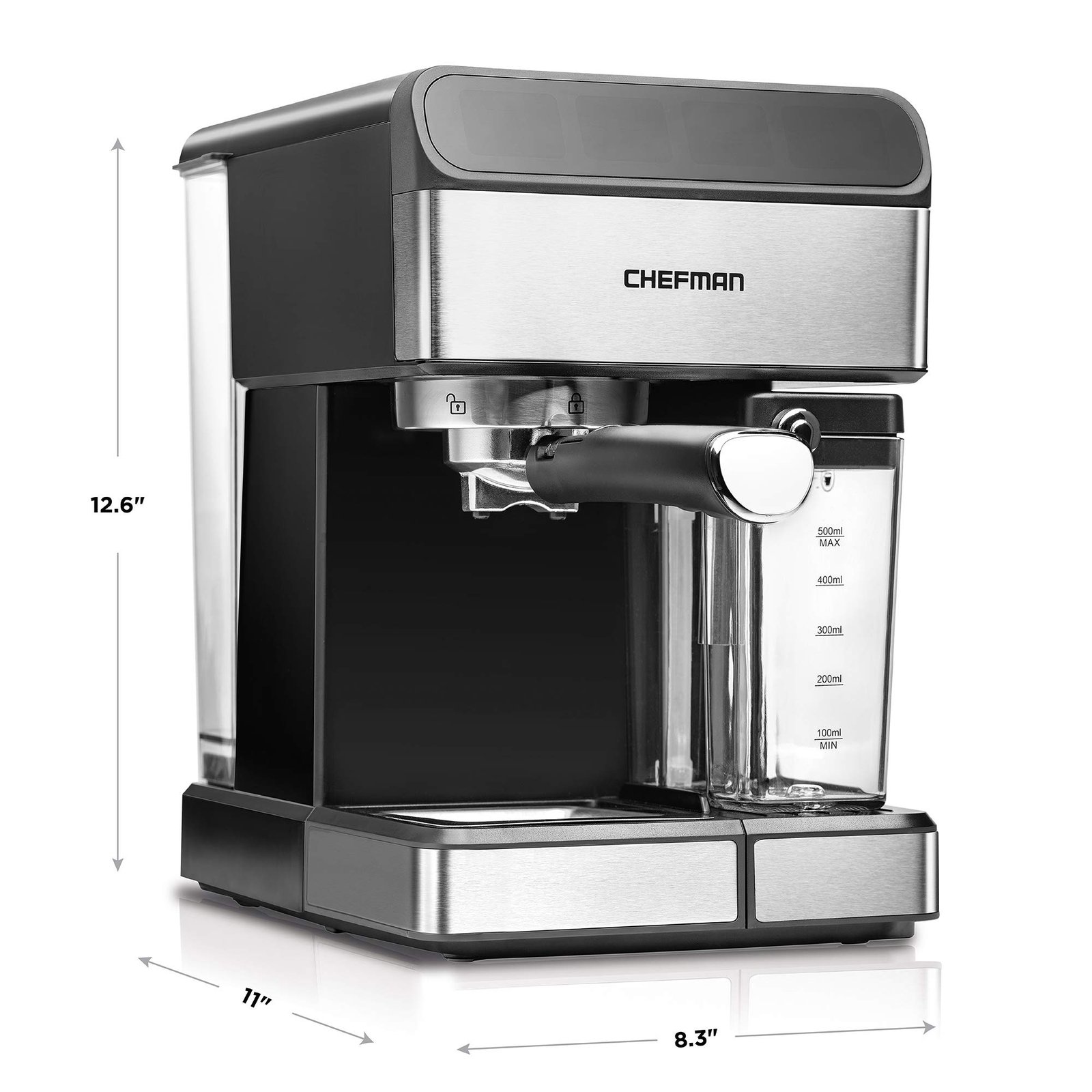 • MAKE YOUR KITCHEN A CAFE: Bring the energizing taste of coffeehouse brews into your home with the gourmet Chefman Espresso Machine! With a powerful 15-bar pump and a built-in milk frothing mechanism, you’ll be able to brew like a barista every morning.