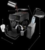 3 delicious fresh bean coffees, easier than ever. Featuring LatteGo, the fastest to clean milk system ever, Easily make delicious coffee varieties like Espresso, Coffee and Cappuccino at the touch of a button. LatteGo creates silky smooth milk froth and cleans up in as little as 15 seconds.