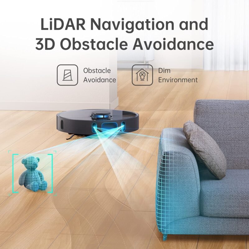 - 【LiDAR Navigation and 3D Obstacle Avoidance】By LiDAR Navigation and Various advanced mapping functions, it can provide the best route planning experience for users; By 3D line laser obstacle avoidance technology, it can reduce collision to protect your vacuum and furniture