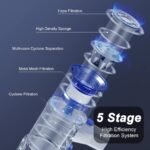 - 【5 Stages Filtration System】 Inside adopts a high-efficiency 5-stage fully sealed cyclone filtration system and latest 5 concentric cyclone groups which captures 99.99% of fine particles as small as 0.1um and offers powerful centrifugul force to efficiently separate dirt. It provides the ultimate purified air and excellent cleaning experience for every user. Note:filter device is washable. Regular cleaning of the filter/sponge will prevent weak suction and blockage.