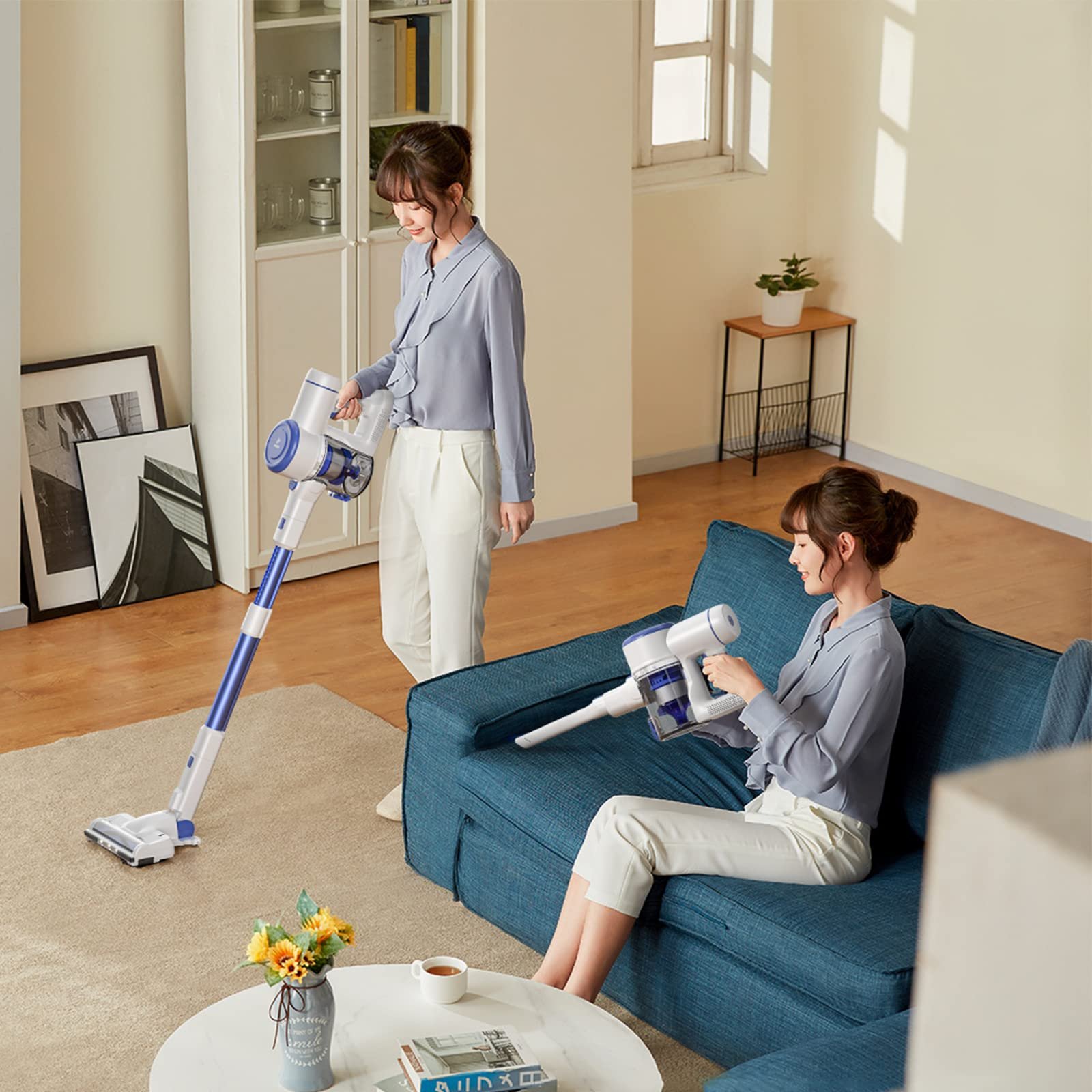 - 【Lightweight&Multi Versatile Attachments】 The cord-free design with versatile attachments gives you the freedom to easily converts to a handheld vacuum to reach corners, stairs and crevices, and even in the car. And comes with storage rack saves your place, and the free-standing design allow the cordless stick vacuum to stand upright after use.