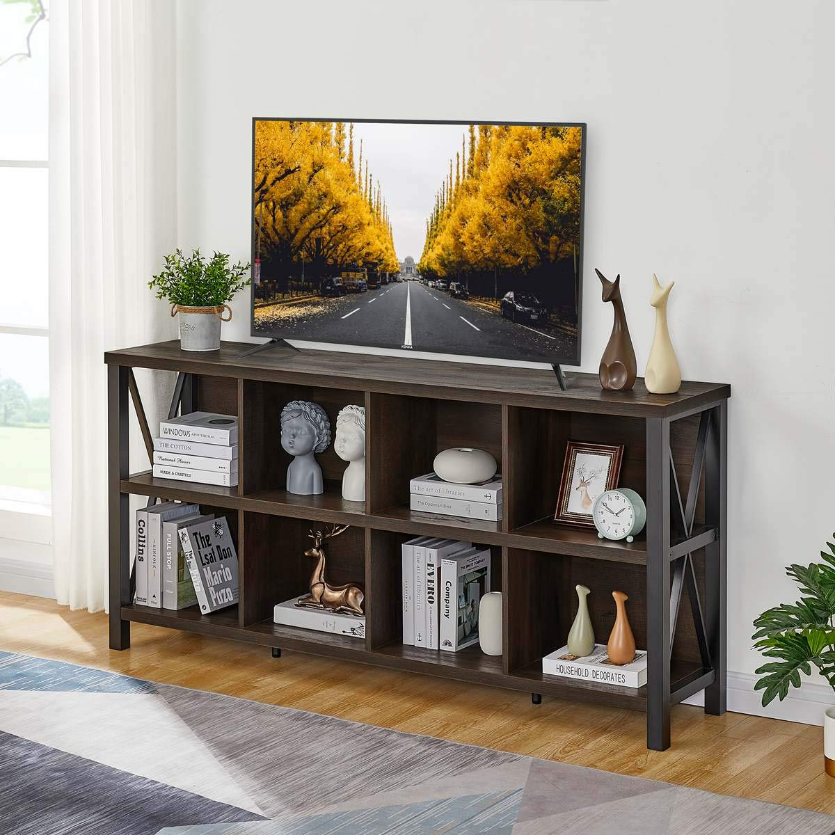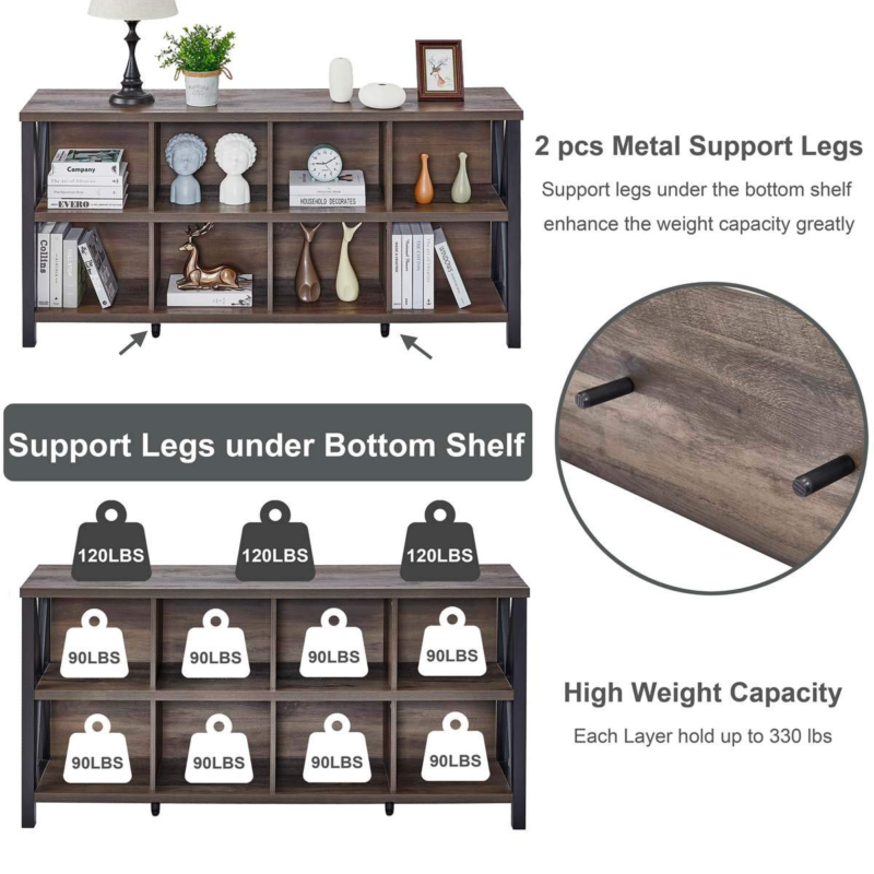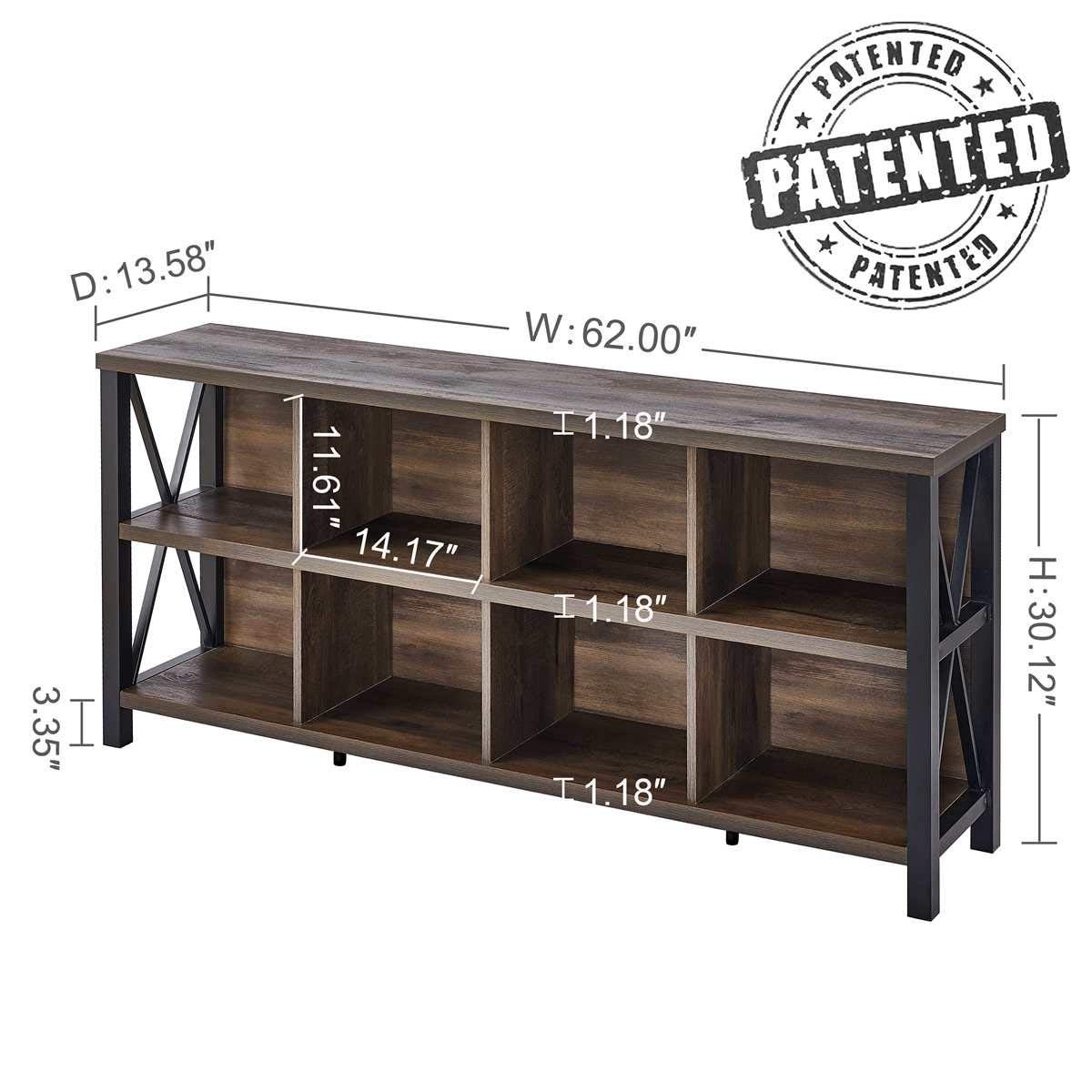 - [Dimension & Durable Materials]: Overall size 62.00”W x 13.58”D x 30.12”H. This cube storage bookcase crafted from high-grade MDF and long-lasting heavy duty metal. Rustic wood grain finish showcases natural knots and grains for a touch of rustic character.