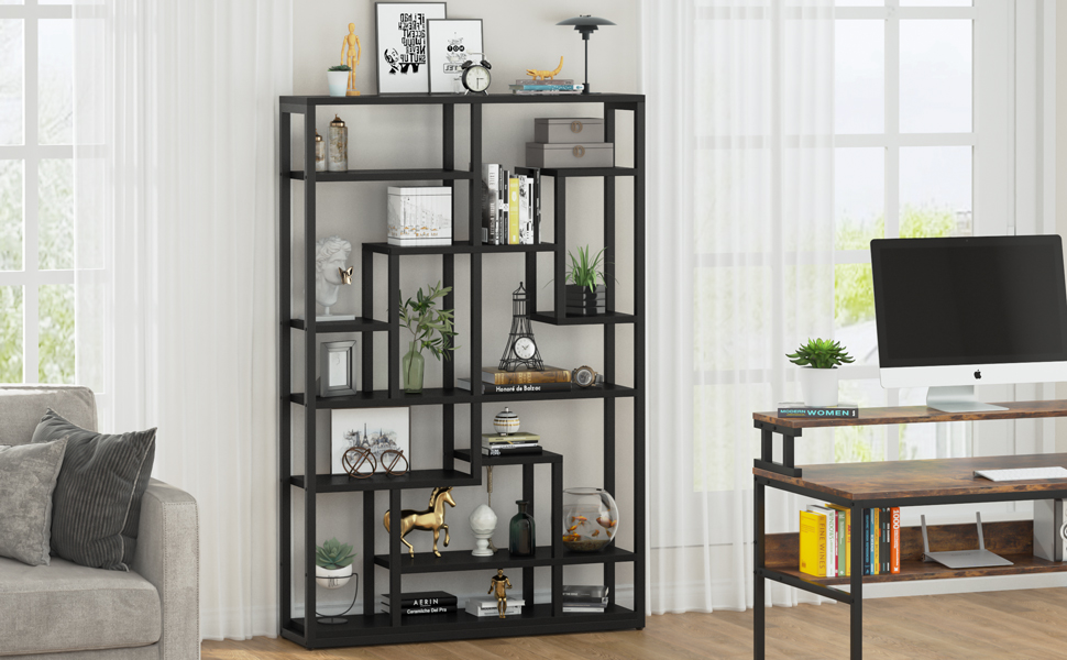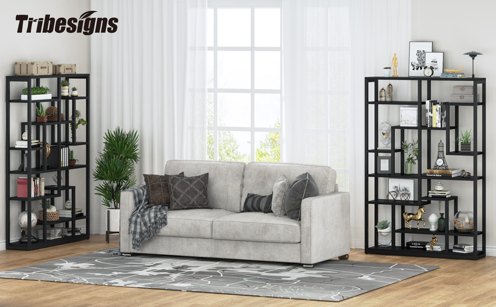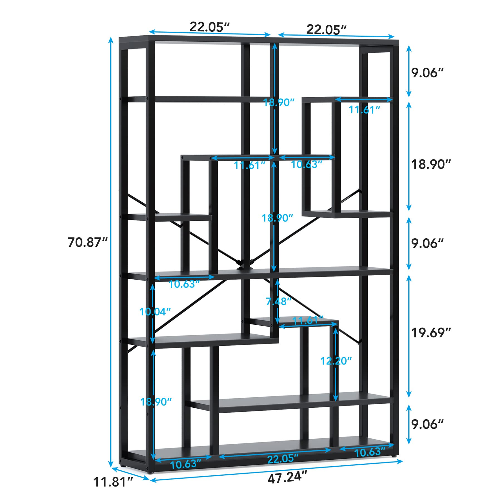 - [ Practical Bookshelf Organizer ]-Rustic and industrial 9 Tier bookcase with open book storage shelves expands space and provides ample space to display your favorite items such as books, photo albums, crafts, potted plants and etc without taking much space. You will surely get many compliments from this bookshelf