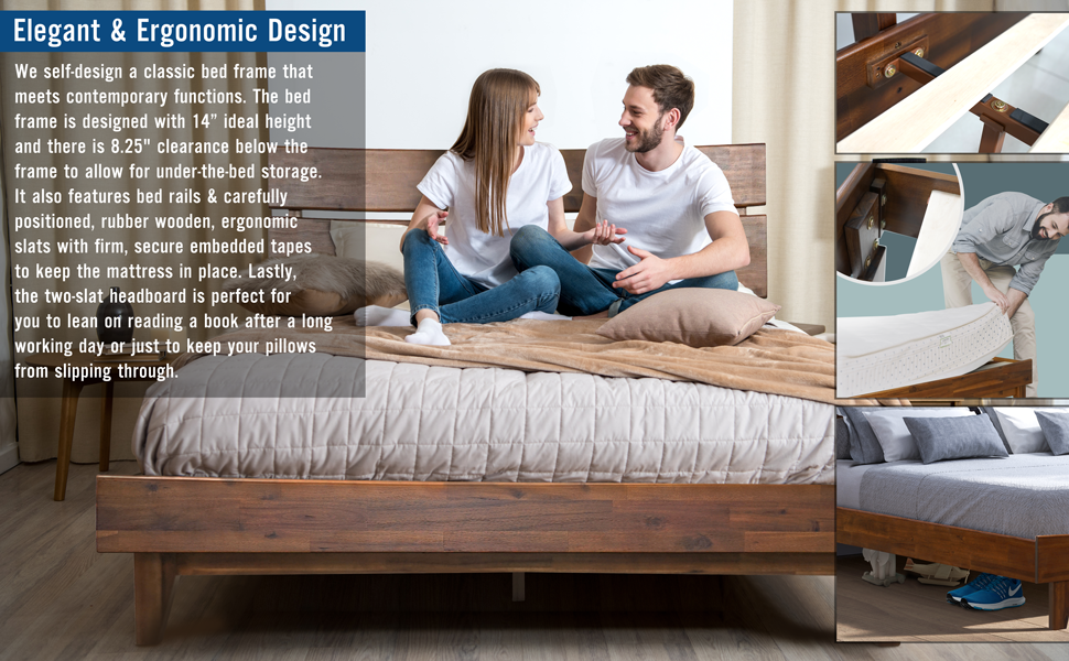 - Features carefully pre-positioned, rubber wooden, ergonomic slats surrounded by the main bed frames to create borders, keeping the mattress from moving or slipping off accidentally during usage