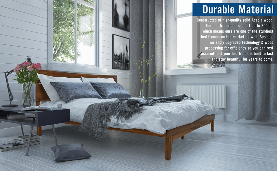 - Our platform bed is made of sustainable solid acacia wood for maximum durability with strong locking system, bringing the stability and sturdiness needed for utmost comfort and your uninterrupted slumber