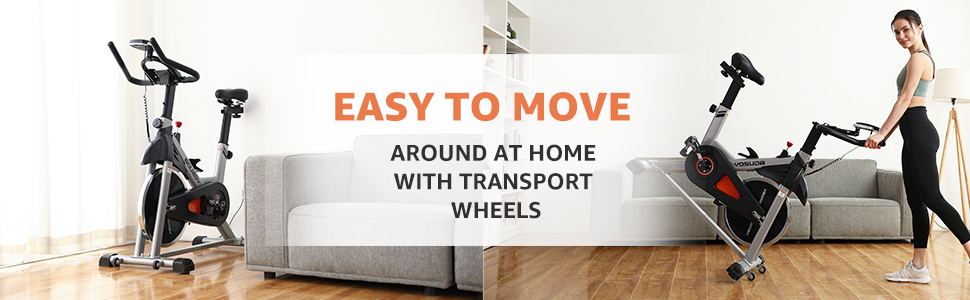 - 【Safe to Use】The adjustable cage pedals on exercise bike protects you from a fast ride. Press the resistance bar to stop the flywheel immediately. The water bottle holder allows you to replenish water in time. Transport wheels help you easily move this cycle machine. All parts are protected and your little baby can’t reach them.