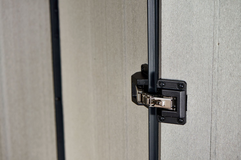 Thick, rib-reinforced wall panels. Weather-resistant materials. Heavy-duty 105° nickel hinge