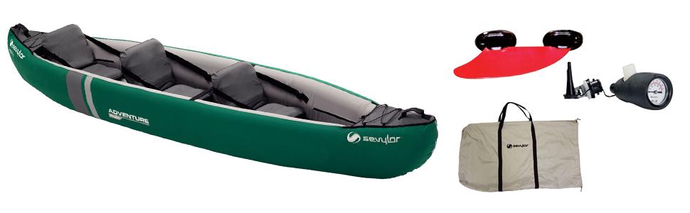 The compact Canadian canoe comes with a durable polyester hull, two PVC side chambers