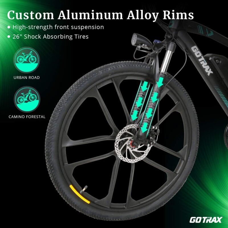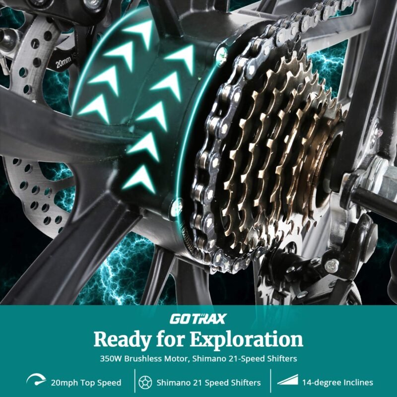 - 350W POWER MOTOR: Our 350W rear-drive motor delivers powerful torque with a unique feature to increase power on your daily commute and mountain riding, which will help the rider reach 20mph with ease. High strength mechanical locking shock-absorbing front fork equipment allows your unimpeded ride on rough snow beach mountain roads.