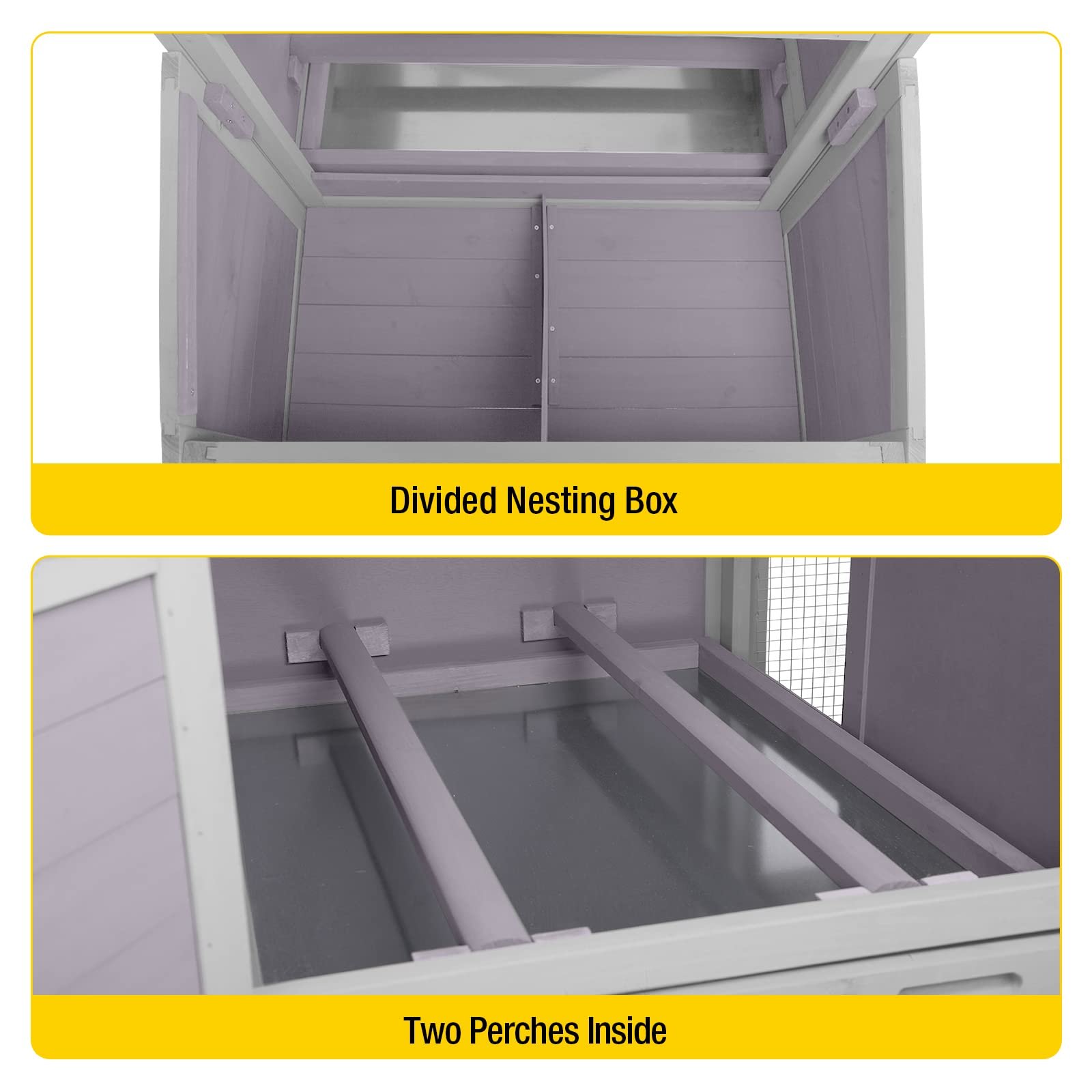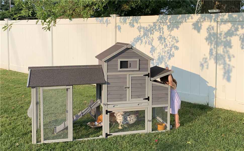 2022 Upgraded Version: Add PVC cover above nesting box avoid water leak into chicken coop. Special custom locks prevent predators from opening egg nests.