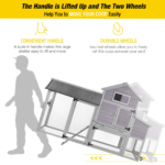 2 sturdy metal wheels and long handle makes this poultry house easily movable. Placing the coop in different places can result in happier chickens and better quality eggs!