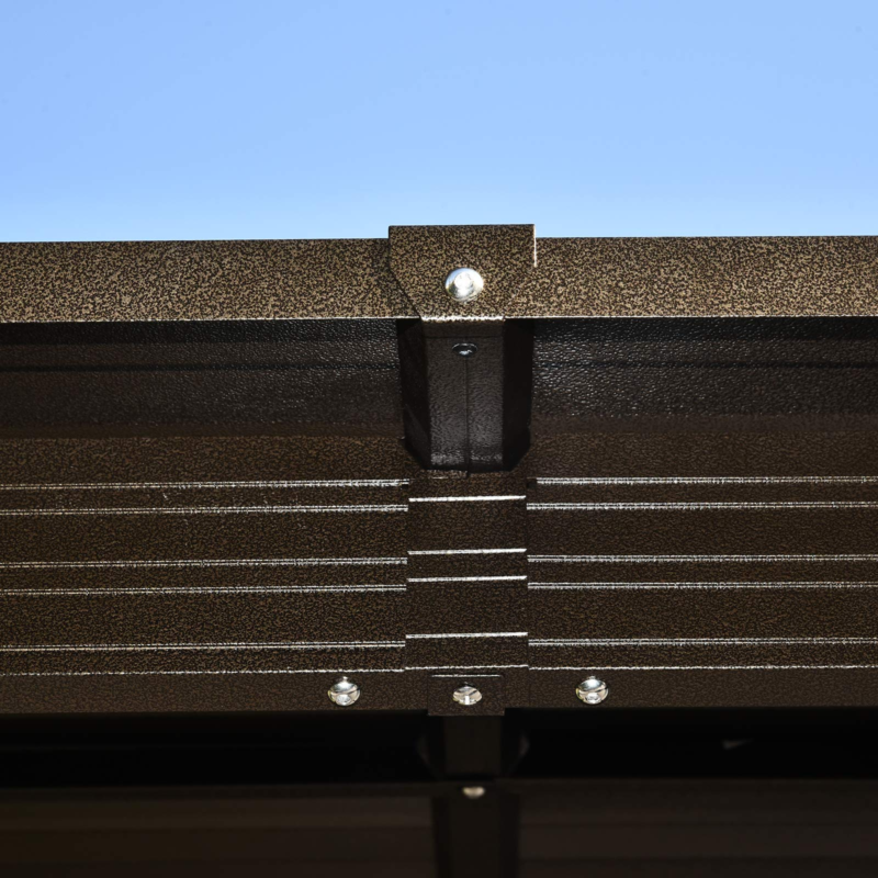LARGE SPACE: Our 10 x 12 hardtop gazebo’s galvanized steel slat roof can cover 120 square feet. The gazebo is spacious enough to accommodate the whole family or 5 to 8 friends for your party, making it an excellent choice for an outdoor bbq, meeting guest, or conversations.