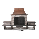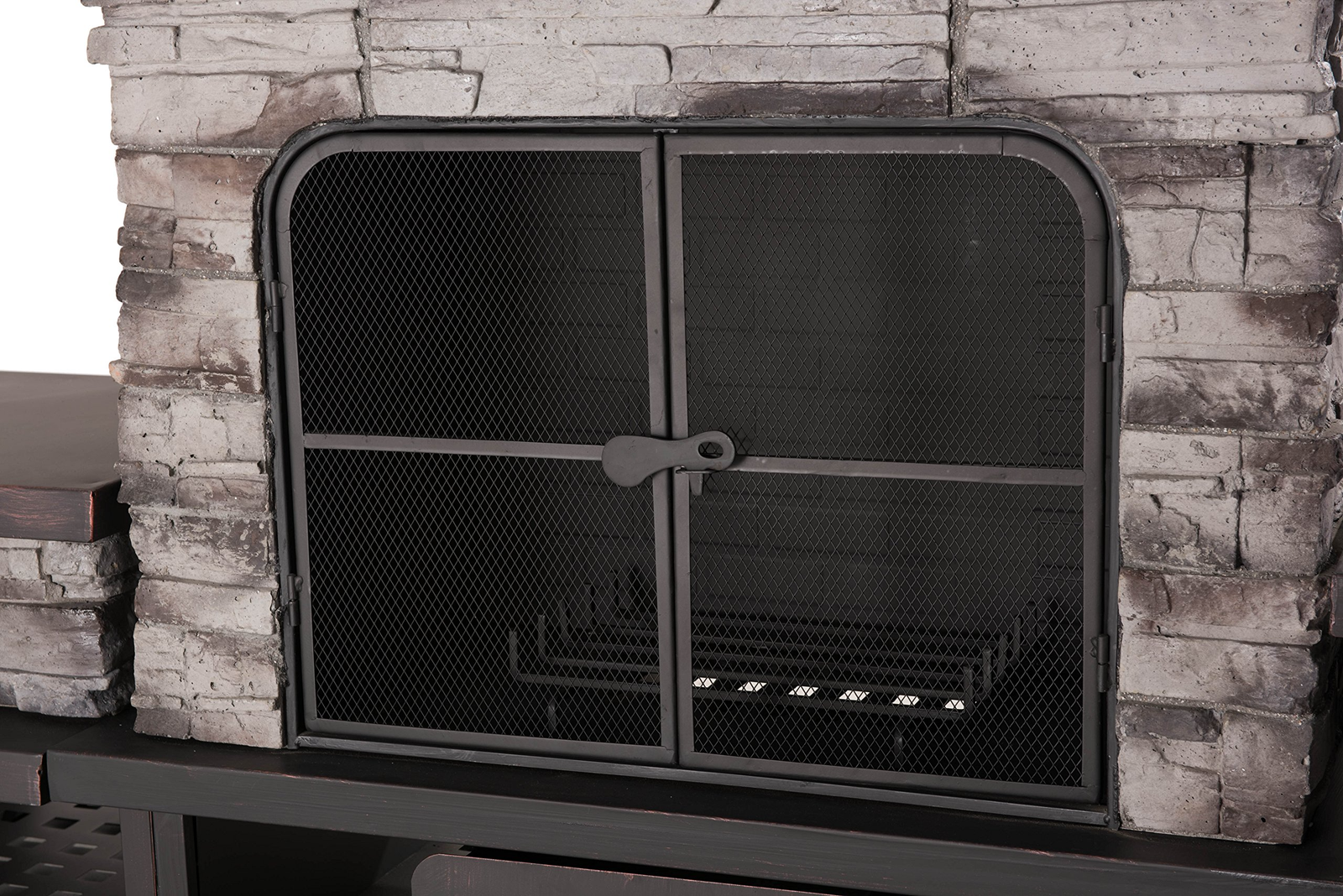 Discover this cozy way to entertain in your own backyard. Imagine sharing joyful times with your guests as you gather around the warm, cozy fire. Your guests will be captivated by the charming ambiance of this handsome fireplace by Sunjoy. That’s because it features a large fire area, perfect for making large, warming fires. The appealing design resembles that of an indoor fireplace; complete with a mantle and chimney. Two large screen doors keep embers from popping out of a crackling fire while the included poker tool lets you open and close the doors when they become too hot to touch.