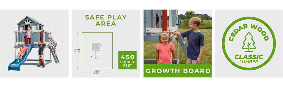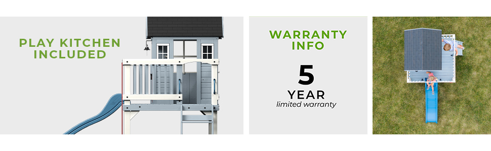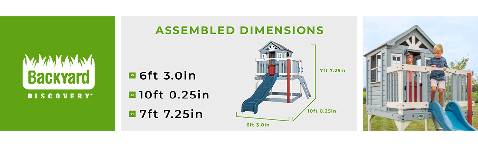 Backyard Discovery introduces their newest playhouse; The Beacon Heights. This fun filled elevated playhouse is perfect for any yard size due to its compact design. Young children will love the imaginary play possibilities with a stove top, battery powered appliances and accessories. The working hinged door and large open windows increase the visibility of little ones at play. The entry ladder complete with wide rung steps makes for easy access to children of all abilities and varying ages. Keep your memories alive year after year by tracking height increases with the attached growth board. The Beacon Heights combines the highlights of a traditional playhouse with the advantages of elevated play and is sure to inspire entertainment for many seasons.