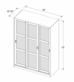 100% Solid Wood Wardrobe with 3 Sliding Louvered Doors
