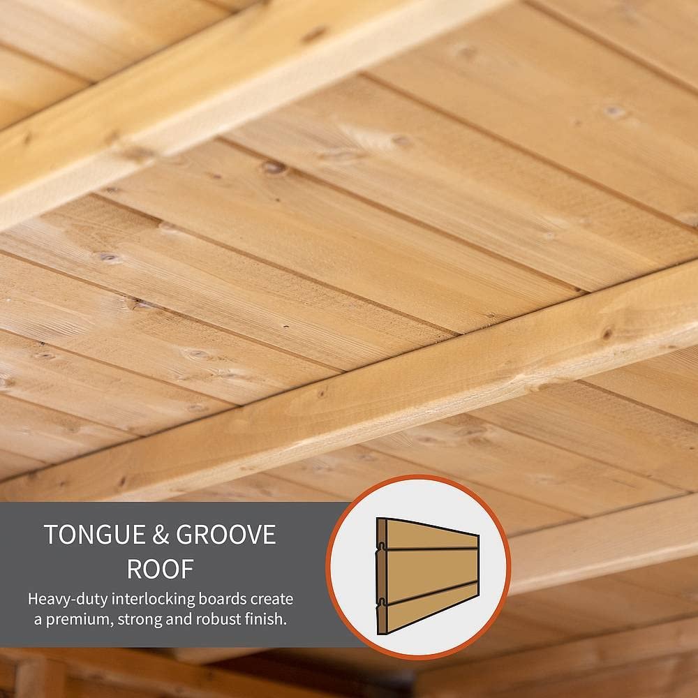 Constructed using strong and durable 12mm shiplap tongue and groove walls, roof and floor; heavy duty roof felt makes the building water-tight and protected from damage