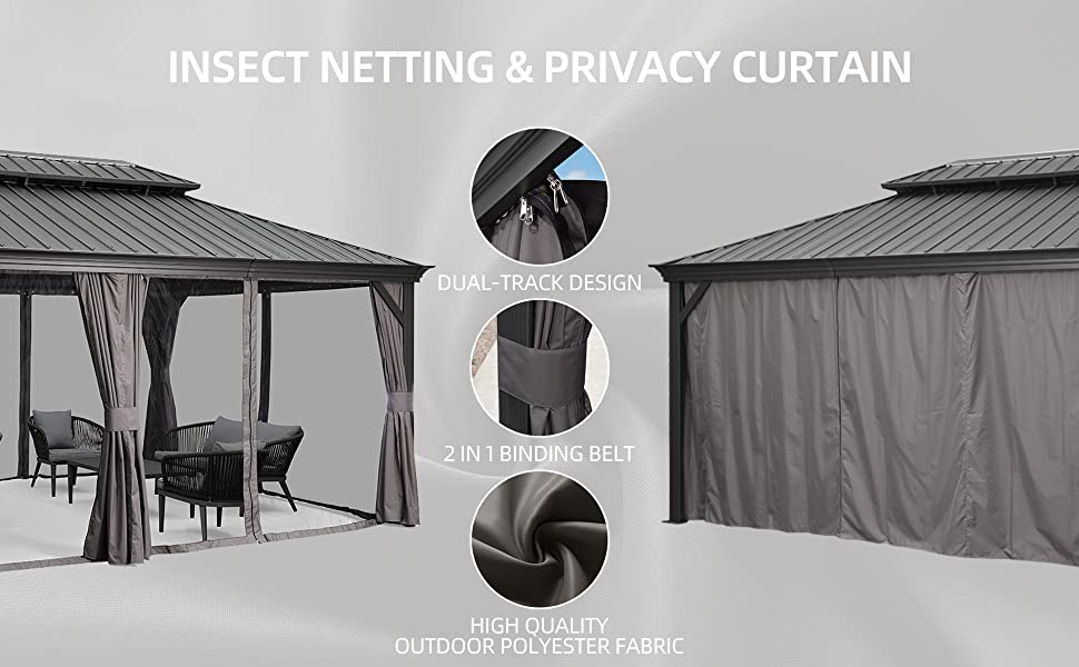 Curtain and Netting Included: Removable curtain and netting ensures UV protection and rain protection, designed for maintaining good ventilation and open view.