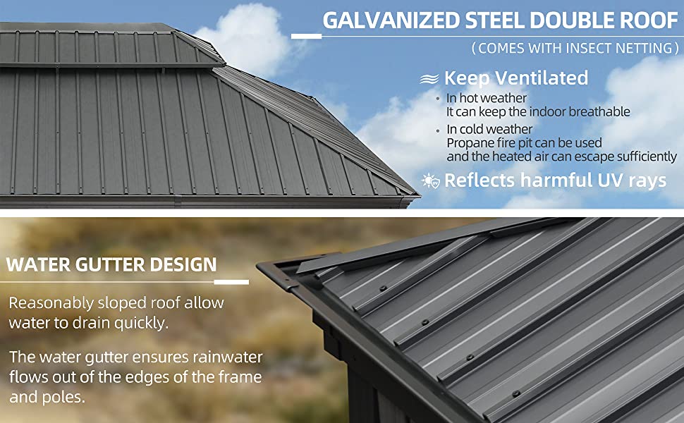 • Features: Rust-resistant, double top roof, water gutter design