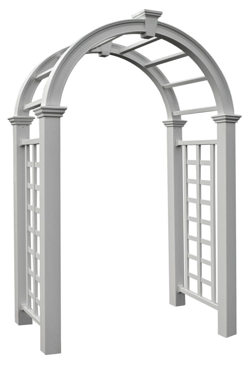 The Nantucket Deluxe Arbor has pure PVC arches, English style PVC lattice and a 50″ opening, making it ideal for wider sidewalks.