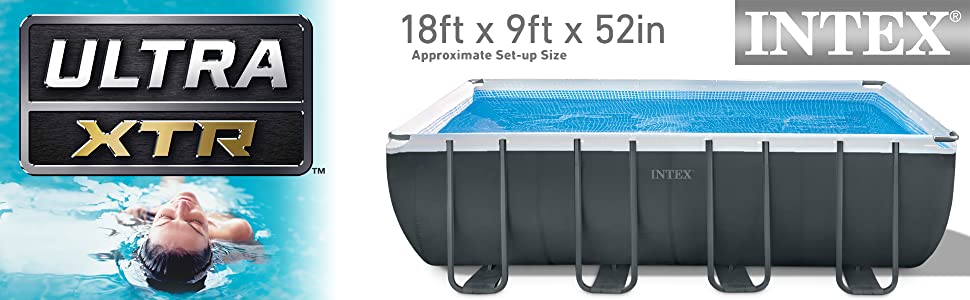 Make a splash this summer with the Intex Ultra XTR Rectangular Frame Pool Set. The rectangular swimming pool design is perfect for narrow backyards, lap swimmers, and pool games. The Ultra Frame design provides excellent durability and a sleek gray finish, all while making setup quick and easy.