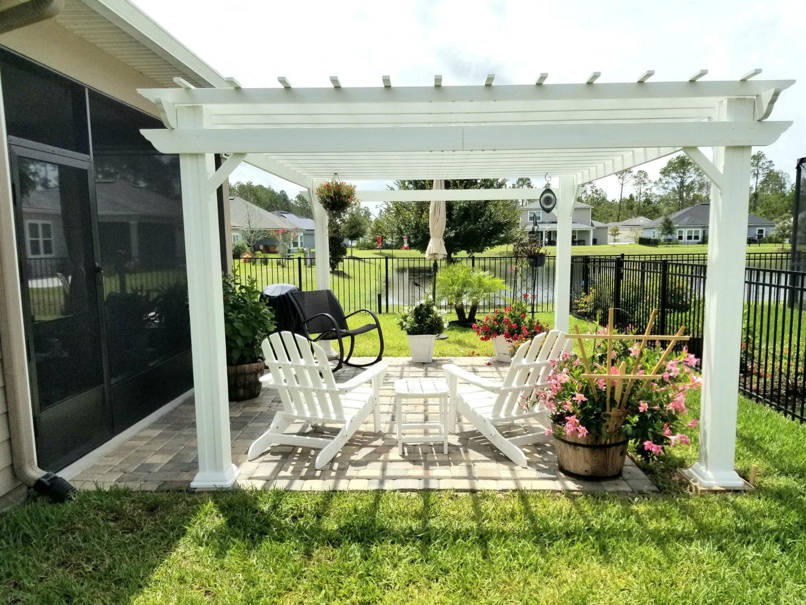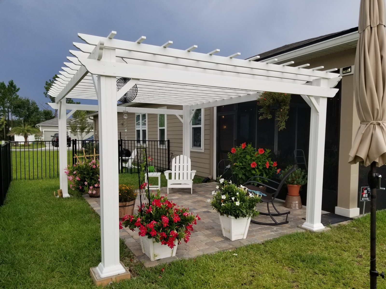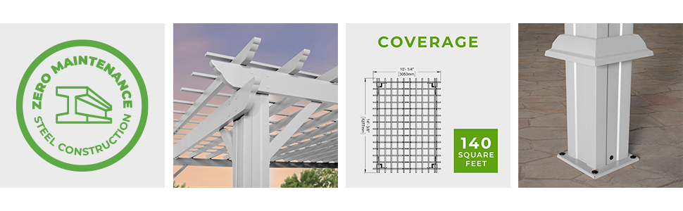 The Hawthorne Steel Pergola is Backyard Discovery’s state-of-the art addition to our patio collection, in a Contemporary White Finish. Our powder coated, galvanized steel construction makes the Hawthorne pergola maintenance free and rust resistant while offering protection against chipping, scratching, corrosion, and UV harm. You can be confident in the stability of the Hawthorne as it is a Pro-Tect™ certified performance structure; certified to withstand up to 100 mph winds.