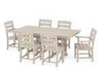 Includes (4) Lakeside Dining Side Chairs, (2) Lakeside Dining Arm Chairs, and (1) Lakeside 37″ x 72″ Farmhouse Dining Table