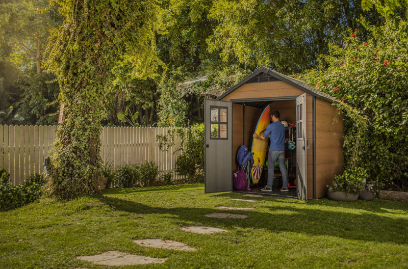 It’s all about organization with the Newton shed by Keter. It’s spacious enough to set up shelving units for even more storage, allowing you to organize camping supplies, canned goods and seasonal items. It has the look and feel of natural wood but crafted with a resin construction that never fades, rots, or rusts. It’s easy to clean and assemble and holds up well to extreme weather. For long-lasting storage, durability and style, the Newton provides it all.