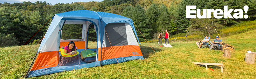 The Eureka! Copper Canyon LX 12 twelve-person, three-season camping tent is your home away from home. Durable, steel and fiberglass frame features pole sleeves corner hubs, and quick clips for simple 2 person set up.