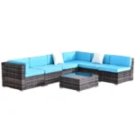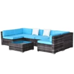 Complete Set: This 7-piece set includes everything you need to create a comfortable and stylish outdoor seating area, including sofa sections, corner pieces, and a coffee table. With its ample seating and convenient table, this set provides the perfect setting for entertaining guests or simply enjoying a relaxing evening outdoors.
