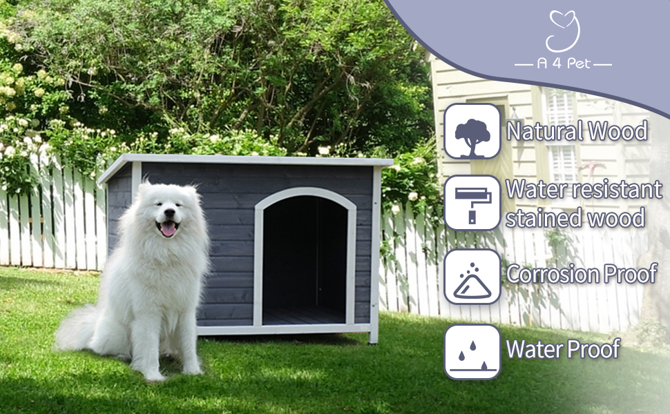 【Durable Construction and Easy Assembly】Manufactured with water resistant stained wood, stainless steel hardware & strong asphalt shingles, the outdoor dog shelter is strong & sturdy for long-lasting protection.It is with pre-drilled holes for quick assembly. A4PET stands behind the quality of our dog house with a 1-Year Manufacturer’s.