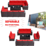 ⛱️【WATERPROOF COVERS & FREE COMBINATION】Kullavik cushion covers are made of high-density fabric which is durable and anti-splashing, which is easy to clean as well. Meanwhile, you can set up this patio sectional sofa set in different shapes according to your own preference. This unique characteristic makes it more usable and fashionable