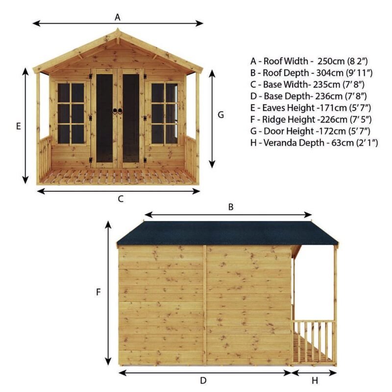 Question:Just to be sure the 10ft is from front to back and including the veranda. And the 10 x 8 ft is the outside deminsions of the shed exactlly