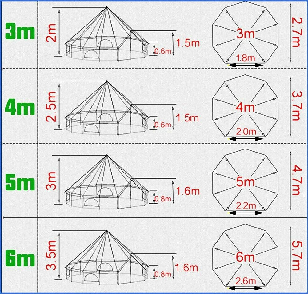 - Heavy-duty 540gsm PVC ground sheet which raised 10cm (4inch) above the ground to be against splashes.