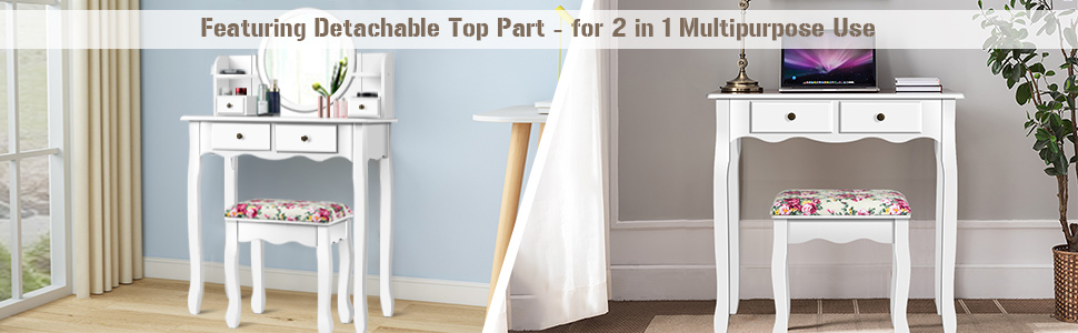 🌺Detachable Top: The top mirror stand of this dressing table can be removed, so you can use it as a writing or reading desk. It is ideal to be placed in study room or bedroom. Designed in modern and concise style, this desk will go really well with the rest of your furniture.