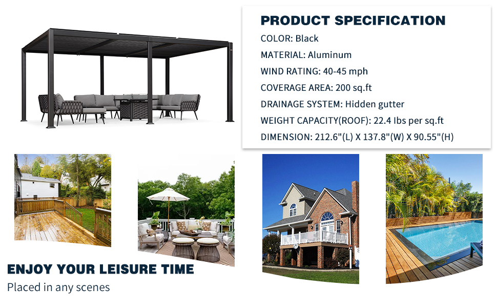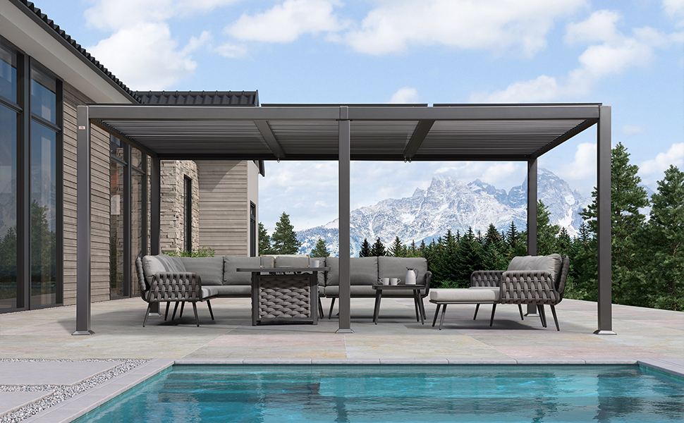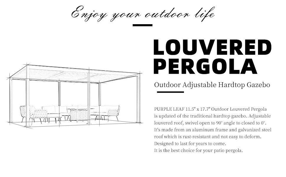 Adjustable Louvered Roof: The unique louvered roof design allows you to control the amount of sun or shade you receive. Keeps out the bright light and harmful UV rays.