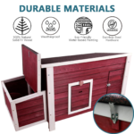 【SECURE HOUSING】ALL SOLID WOOD PANELS and a series of locks on each access point keep your household animals safe inside, and the predators out. And air will go through from the bottom slabs for good ventilation. Kindly noted that the Top CANNOT be opened.