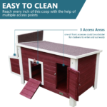 【EASY TO CLEAN】Reach every inch of this chicken coop with the help of 3 Access Areas. One of the front accesses could be a ladder for chickens to enter and out easily also.
