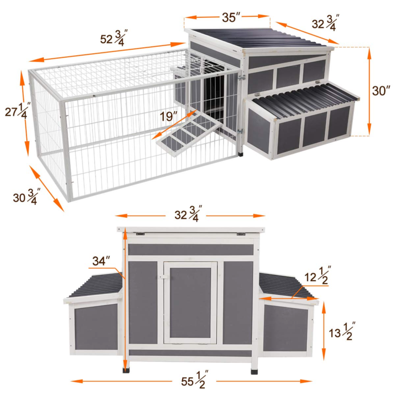 - The chicken house comes with nesting box, resting box and ramp.