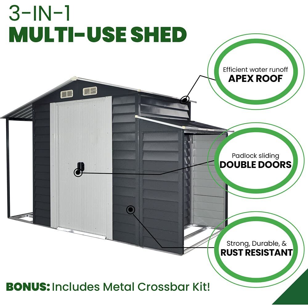 STRONG AND DURABLE: 3-in-1 multi-use storage shed is made of galvanized steel built to last outside year round – rust, rot, fire, and water resistant.