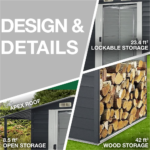 EFFICIENT DESIGN: Roof design allows for efficient water runoff and high enough for an adult to stand and move around with ease. Firewood shed holds up to 42 cu. ft. of stack firewood.
