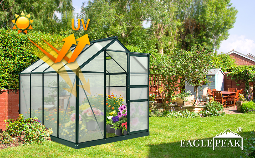 Premium Material: The outdoor hobby green house is made of ahigh quality aluminum frame and 4 mm twin-wall poly carbonate roof panels. The transparent panels help block UV rays but also allow maximum light transmission. It is perfect for seedlings, flowers, vegetables and herbs.