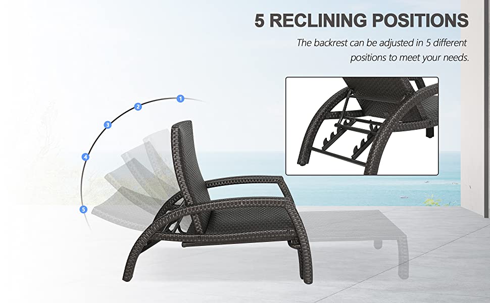 Adjusts to four comfortable positions. Can be pulled out for lounging or folded away to create a reading chair. With the modern and stylish design, the outdoor patio chaise lounge perfect fit for outdoor use