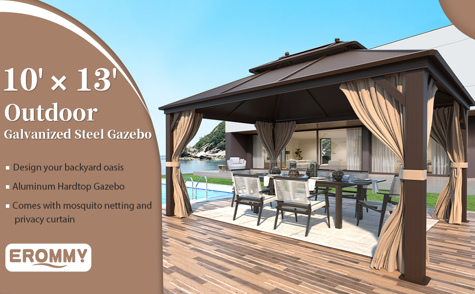 EROMMY 10’x13′ Hardtop Aluminum Permanent Gazebo