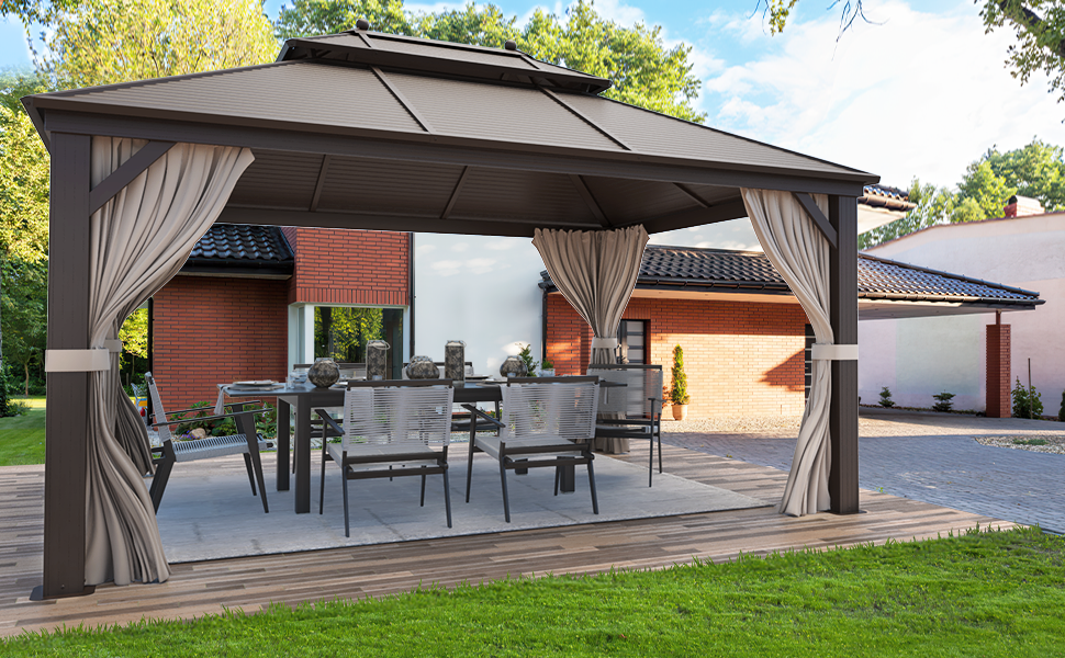 【GALVANIZED STEEL ROOF】- Beautiful hard metal top instead of normal fabric or polycarbonate material.Compare to a traditional soft top,this kind of gazebo roof is strong enough to withhold any heavy snow and offer unbeatable stability in windy conditions.