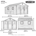 Lifetime’s 11-foot wide Sheds provide the perfect space for a tool shop, outdoor gear and ATVs, or even a place to park your car. The spacious interior, heavy-duty steel-reinforced construction, and low-maintenance design gives you a durable garage or workshop, and is the perfect solution to your storage needs. The Lifetime 11′ x 18. 5′ Shed features: 9 ft. wide tri-fold doors, (2) large skylights, (2) shatter-proof polycarbonate windows, (2) screened vents, (2) 30″ x 14″ shelves, (2) peg strips, (1) shed expansion (model 6426) and a 10-year limited . Floor and installation hardware included. Comes in (5) boxes.
