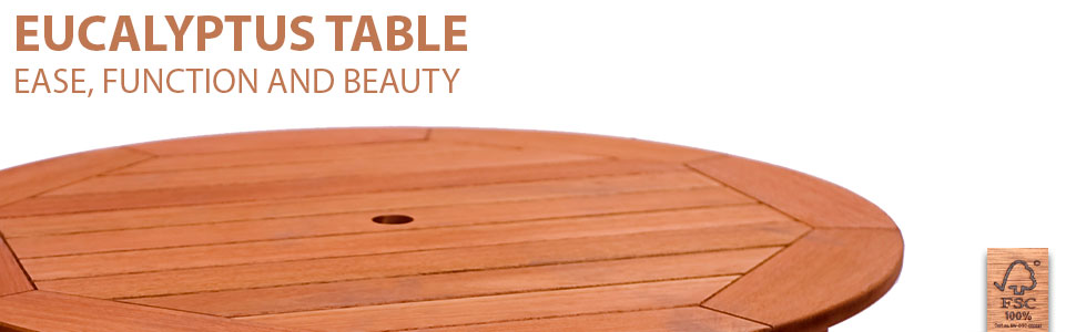 5-Piece Set-This set includes 4 high quality 100% FSC certified eucalyptus armchairs and 1 round table. This set is ideal for both indoors and patio and will make your outdoors an elegant space to enjoy with family and friends.